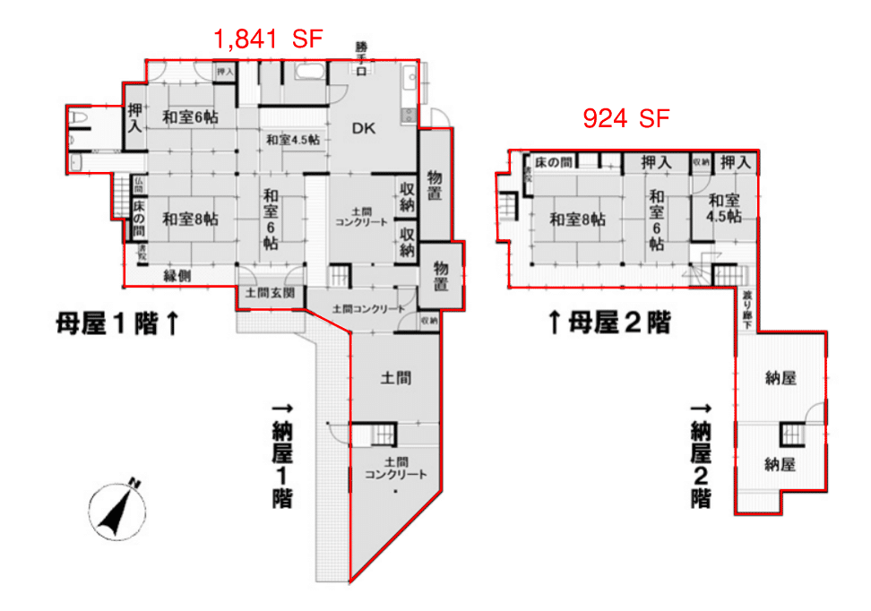 Based on a general tatami size of 3′ x 6′, this house is estimated to be a total of ~2,765 SF.